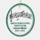 This modern green high school choir Christmas ornament features the student and chorale name under the musical staff with treble clef and music notes. Customise for a singer, choir teacher, or director for a great graduation gift.