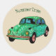 Summer On funny sticker. Green hippie car with mandala elements drawing on sticker.