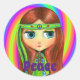 Green Hippie Doll Girl Peace Sign Headband Cute Classic Round Sticker