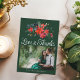 This gorgeous green custom holiday wedding photo thank you card features a beautiful watercolor of red poinsettia flowers and pine leaves for Christmas. An elegant winter card with festive floral for the holidays. Personalise with the couple's photograph and names.