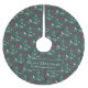 Green grey holly leaves and red berries on dark green patterned Christmas personalised name and message tree skirt. Original graphic art and pattern design by www.mylittleeden.com