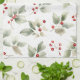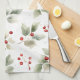 Green Holly and Red Berries Pattern Tea Towel