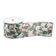 Ribbon with a vintage holiday pattern of green holly with and bright red berries.