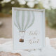 Invite friends and family to take a treat with this table sign, featuring a green hot air balloon and elegant gold typography.