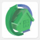 A green house with green arrows around it. This design looks really effective on these Stickers