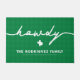 Give a big Texas welcome to everyone who comes to your home with this design. The word "howdy" scrawled across in a large handwritten font over the state shape. Personalise with your family name or additional message. Background uses colours of state schools with a slightly darker colour in a houndstooth pattern for a timeless look. Design available in burnt orange, green, red, purple, blue, black, and maroon.