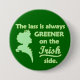 The lass is always greener on the Irish side. This cute design features a vintage green lady silhouette with green lettering and faint gold trim. Perfect for the girl / woman from Ireland or with Irish heritage who likes puns / wordplay. It would be a great lucky button to wear for Saint Patrick's Day but is also wearable all year. If you click "Customise It" you can change the background shade to whatever you'd like.