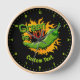 Green pepper with environmental message over circle of flame. Custom background colour. Custom text.