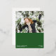 Bring joyful wishes to your friends and family this holiday season with this beautiful, bold vertical photo gold foil Christmas postcard. Simple cursive script over a festive green background underneath your family photograph. A chic, modern holiday postcard with a picture of your family.