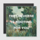 The universe is rooting for you! This calming postcard featuring a beautiful abundant jungle painting and the encouraging words that yes, the universe is supporting you makes a wonderful gift for your woke friends that are chasing their dreams.