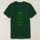 Green Keep Calm St Patricks Day party t shirts. Keep calm and carry on t-shirt maker for St Patricks Day. Customisable KeepCalm template tee shirt with vintage green shamrock clover and letters. Customise image and text with your own funny quote or humourous saying for Saint Patricks Day. Design your own St Pats shirt easy and quick.