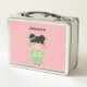 Cute lunch box features sweet Japanese doll in pink floral kimono with traditional hair decor. Personalise with name or monogram