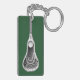 Cool lacrosse keychain featuring unique lax stick and ball illustration on green background for lacrosse player or team coach.