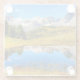 Green Landscape with Pond and Snowy Mountains Glass Coaster