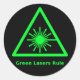 Black sticker with a laser warning symbol and "Green Lasers Rule" in bright green. Because they do.
