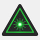 Triangular black sticker with a green laser warning symbol.