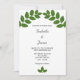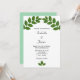 Elegant green Laurel leaves on white Wedding Invitation. The back side has three bay leaves on light emerald green background. Green leaves marriage invitation cards.
