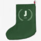 Green Laurel Wreath Letter J Monogram Large Christmas Stocking