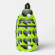 Pictured On Lime Green Are Three Black Lawn Bowls With A Jack In A Repeated Pattern.