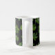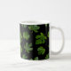Green leaf closeup isolated on black background coffee mug
