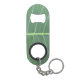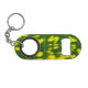 A multifunctional mini bottle opener keychain featuring a vibrant green leaf design on one side and a playful yellow dot pattern on the other. Perfect for outdoor enthusiasts and those who appreciate unique accessories.