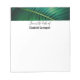 A notepad with a closeup photo of a green tropical leaf displaying some vibrant palm fronds.
