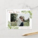 Send our photo save the date postcards with greenery to let your guests know to block off your wedding date. The colours for all text and background are customisable - you can choose a colour from one of the options shown, or click "Edit Design" where you can change each text box to whatever colour you would like. The back side has a predesigned space for adding more information like your wedding website. If you would prefer the back side to be blank, you can delete all the text boxes or simply place a square element over the text and resize to cover the entire back (you can even change the colour of the element to have a coloured backer!). Be sure to check out our large selection of photo save the date cards, postcards, and magnets by browsing our Picture Save the Date collection!