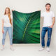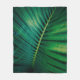 A blanket with a closeup photo of a green tropical leaf displaying some vibrant palm fronds.