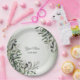 Green Leaves Black Olive Elegant Wedding Party Paper Plate. Unique, beautiful, stylish design. Easy to be personalized. Font style, size and colors can be changed. Matching items available.