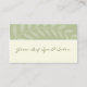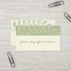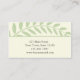 A stylish business card with a top border of green leaves on arched branch. The back of the card features the green leaves on cream background.
