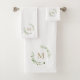 Add a touch of elegance to your bathroom with this Gold & Green Leaves Crest Monogram Towel Set. Featuring a timeless laurel wreath design with a customisable initial, this luxurious towel set brings a sophisticated and personalised touch to your home. It's perfect for daily use or as a stylish gift for weddings, housewarmings, or anniversaries.