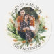 Green Leaves Family Photo Merry Christmas Classic Round Sticker