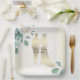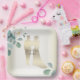 Green Leaves Flower Golden Frame Wedding Party Paper Plate