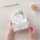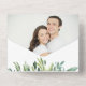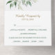 This pretty all season wedding invitation with tear away RSVP card combines elegant watercolor images of blue green leaves with modern typography. The inside gold frame is embellished with soft leaves, and the outside flap shows your own photograph. Your custom text is a combination of handwritten script and traditional fonts in gold and blue green, and there are plenty of fields for your information. If you don't need a text field, just blank it out. We are always happy to help, so feel free to message us if you need assistance. If you're having a buffet reception, we can work with you to re-design the RSVP portion, so don't hesitate to ask!