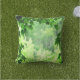This pretty outdoor pillow presents a green leafy world of peace and serenity. Dark maple leaves frame the image, leading to a sunny woodland scene with shades of yellow, white and forest green.