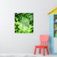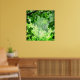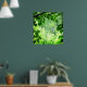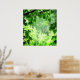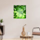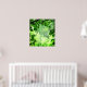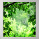This poster invites you to enter a green leafy world of peace and serenity. Dark maple leaves frame the image, leading to a sunny woodland scene with shades of yellow, white and forest green.