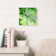 This wall clock invites you to enter a green leafy world of peace and serenity. Dark maple leaves frame the image, leading to a sunny woodland scene with shades of yellow, white and forest green. The numbers can be cleared if a simpler design is preferred.