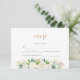 Stylish RSVP cards to coordinate with our white and gold floral watercolor wedding collection with a faux gold foil metallic heading and an additional line for any dietary requirements. Matching items available in this collection.