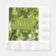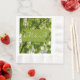 Coined lunch napkins with rich green tree leaves in daylight inspired by the beauty of the outdoors with custom initials for your wedding celebration.