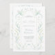 Wedding Invitation with a frame of elegant branches with green blue leaves. Hand drawn abstract delicate leaves on white background. Romantic floral nature background. Abstract nature leaf branches. Vintage spring or summer floral design. Botanical plot. Soft green botany Wedding Invitation. Green Leaves Collection.