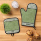 Green Linen and Gingham Check Personalised Oven Mitt & Pot Holder Set