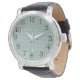 This men's watch has a mid-century modern design of sets of five white lines, alternately horizontal and vertical, repeating across the design on a retro green background. If you like the design but want different colours, message me.