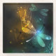 Green luminous dragonfly flight glass coaster