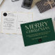 Our premium corporate Christmas postcard features the word Merry Christmas in an elegant ligature font, pressed in real shimmering gold foil on a rich festive green background. Your company logo is elegantly placed on both the front and back, ensuring a polished and professional presence. Paired with your custom holiday message in matching foil, this design conveys timeless elegance and heartfelt appreciation.