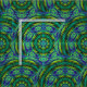 This magical, mysterious, mystical yet modern fabric design features a brilliantly coloured geometric three dimensional circular abstract mandala pattern of overlapping kaleidoscope curves and circles in green, blue, gold, turquoise and yellow.