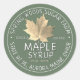 Edit your business name, address, volume of maple syrup and grade. Sugar maple leaf on spring-green background with white chalkboard text. Simple white line along border of label.