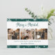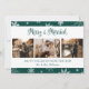 Cute green newlywed photo holiday card featuring snowflakes on a plain green background and a photo collage. Easily personalise this merry and married photo holiday card with your photos and text.