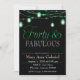 This formal, elegant green birthday party invitation stylish green font it also has bright green mason jars.