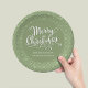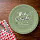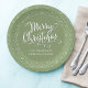 Make your holiday gatherings extra special with these Merry Christmas party supplies featuring a classic calligraphy script design. These disposable paper plates showcase a green and white holiday theme with a simple snowflake pattern, adding a festive touch to your Xmas celebration. Personalise them with a custom name for a unique touch. Designed with a fun whimsical design and a classy elegant style, these plates offer a simple minimalist look, perfect for stylish yet convenient holiday entertaining.