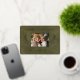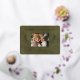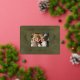 Your family holiday photo will shine with the gold foil on this gorgeous postcard. The words "Merry Christmas!" and a template for your family name appear in crisp and clear typography. The green leather print background feels luxurious. Pine branches in gold foil add a festive touch. The back of this elegant postcard is a beige leather print that will feel luxurious to write a personal note on.